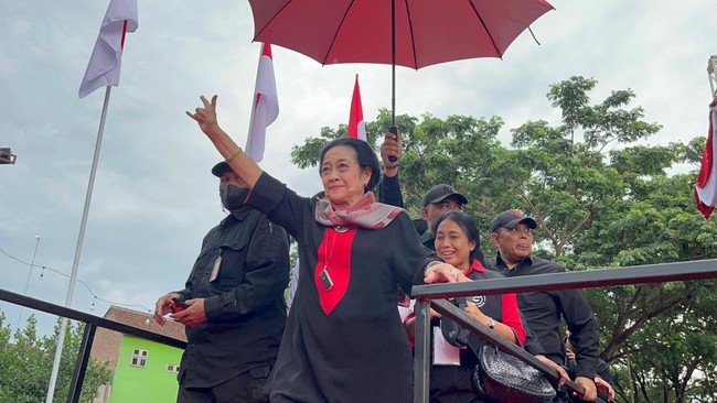 Ketua Umum PDIP Megawati Soekarnoputri menghadiri Hajatan Rakyat di Banyuwangi, Jawa Timur. Megawati turun langsung dalam kampanye akbar Ganjar-Mahfud.