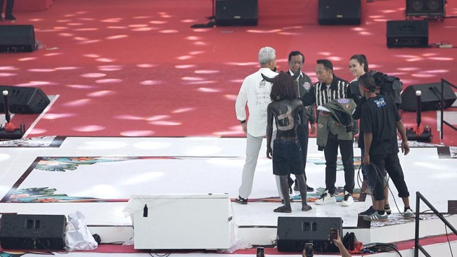 Semangat para pendukung semakin menyala saat Ganjar dan Mahfud memasuki panggung. Di hadapan para pendukungnya, Ganjar mengatakan setiap dirinya keliling Indonesia, selalu saja ada yang menuliskan harapan di punggung Ganjar-Mahfud.