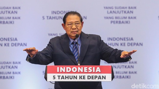 Hal itu disampaikan SBY dalam pidato kebangsaan bertajuk 'Indonesia 5 Tahun Ke Depan' di Avenzel Hotel & Convention Center Cibubur, Rabu (7/2) malam, yang kemudian disebarkan kepada media pada Jumat (9/2/2024).