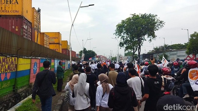 Massa pendukung pasangan capres-cawapres nomor urut 1, Anies Baswedan-Muhaimin Iskandar (Cak Imin) melakukan long march menuju lokasi Kumpul Akbar di Jakarta Internasional Stadium (JIS). Mereka terlihat memenuhi jalan mulai dari terminal Tanjung Priok.