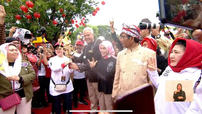 Pasangan Ganjar Pranowo dan Mahfud Md menggelar kampanye akbar penutup di Solo, Jawa Tengah. Dalam acara tersebut, Dewan Penasihat TPN Ganjar-Mahfud, Puan Maharani memberikan wayang kepada Ganjar.