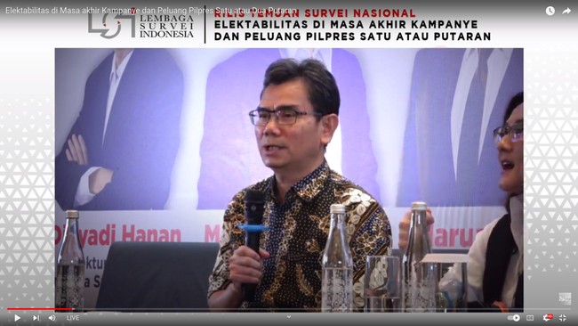 Lembaga Survei Indonesia (LSI) menyebut 66,3% responden menginginkan Pilpres 2024 berlangsung satu putaran. LSI juga merilis survei prediksi pemenang Pilpres.