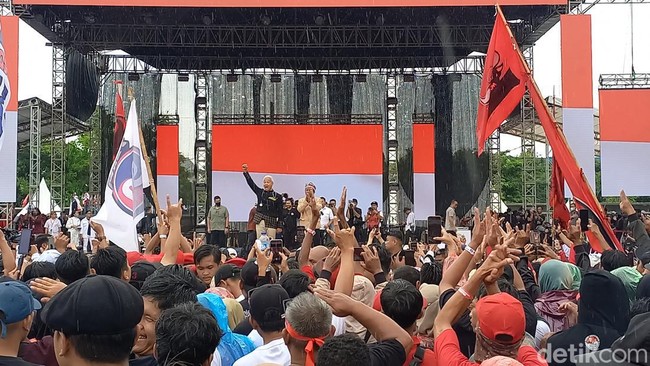 Hal itu disampaikan Ganjar dalam sambutannya di Hajatan Rakyat, Solo, Jawa Tengah, Sabtu (10/2/2024). Ganjar mulanya mengajak para pendukung memilih nomor urut 3.