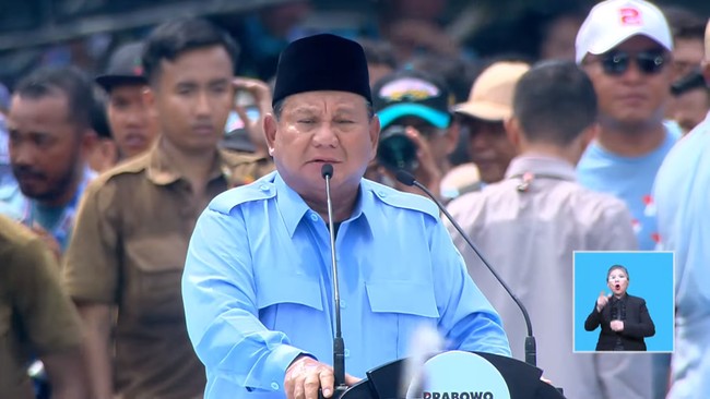 Capres nomor urut 02 Prabowo Subianto mempercepat kampanye akbarnya di Stadion Utama Gelora Bung Karno (SUGBK) Jakarta. Prabowo mengaku hal ini lantaran massa sudah hadir sejak pagi.