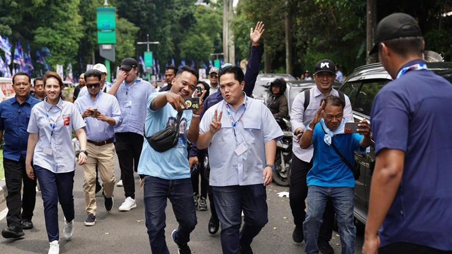 Erick yang mengenakan kemeja biru muda khas paslon Prabowo-Gibran tampak asyik berjalan kaki bersama masyarakat yang ingin menyaksikan Prabowo-Gibran. Tak ada jarak antara figur publik dengan massa pendukung, Erick tampak hangat menyapa dan berbincang dengan masyarakat yang telah datang lebih awal untuk bisa ikut kampanye akbar Prabowo-Gibran.