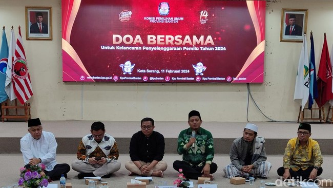 KPU Banten menggelar doa bersama jelang hari pencoblosan pada 14 Februari 2024. Doa bersama digelar juga di 8 KPU kabupaten kota se-Banten bersama perwakilan partai politik dan peserta pemilu.