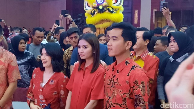 Wali Kota Solo Gibran Rakabuming Raka menghadiri perayaan Imlek di Sun City Glodok, Jakarta. Gibran datang mengenakan batik merah.