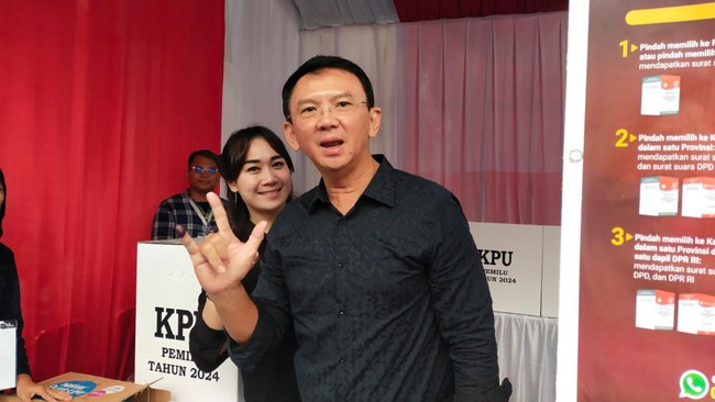 "Jadi kami berempat kebetulan anak satu yang cewe ada di luar negeri, kuliah. Jadi kami, saya, istri, dan dua anak yang laki. Kalau Daud pertama kali nyoblos," ucap Ahok di lokasi, Rabu (14/2/2024).