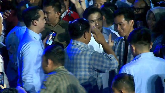 Hal itu terjadi usai keduanya menyampaikan pidato dan saling bersalaman dengan para pendukung dan relawan yang hadir, dalam acara Mengawal Suara Rakyat di Istora Senayan, Jakarta Pusat, Rabu (14/2/2024). Setelah itu, Prabowo memberikan hormat dan dibalas kembali hormat oleh Gibran.