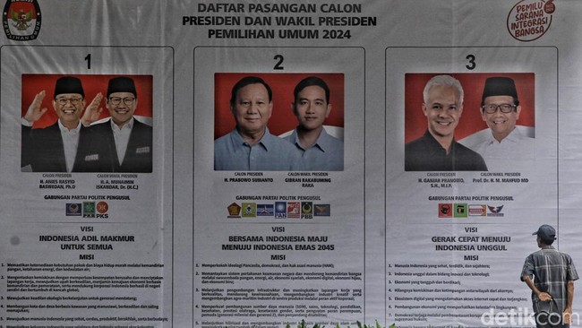 Berikut ini hasil sementara hitung suara Pilpres 2024 yang diunggah situs KPU pada 18 Februari 2024 pukul 07.55 WIB dengan data masuk 66,61%, disusun berdasarkan nomor urut capres-cawapres: