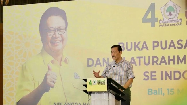 Ketua Dewan Penasihat Partai Golkar, Luhut Binsar Pandjaitan, berkumpul bersama petinggi Partai Golkar di Bali. Luhut mengingatkan tak boleh ada yang menggoyang partai berlambang beringin tersebut.