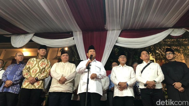 "Sekali lagi terima kasih yang bisa saya ucapkan kepada Saudara sekalian, marilah kita mulai perjalanan ini ke depan, perjalanan perjuangan yang mulia, perjuangan yang sasarannya jelas, sasarannya cerah di depan kita," kata Prabowo.