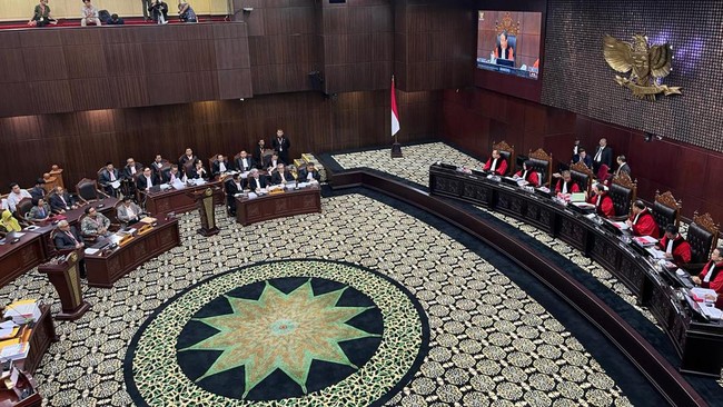 Momen itu terjadi saat ahli dari Ganjar-Mahfud, I Gusti Putu Artha, memberikan keterangannya terkait sengketa Pilpres dalam persidangan, di gedung MK, Jakarta Pusat, Selasa (2/4/2024). Usai Putu Artha memberikan keterangan, Suhartoyo mempersilakan Hasyim menyampaikan pertanyaannya.