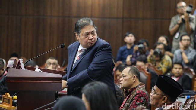 "Pertama, saya hadir ini undangan untuk perhitungan perselisihan hasil pemilihan umum presiden. Kedua, saya hadir sebagai Menko Perekonomian," kata Airlangga dalam sidang sengketa pilpres di gedung MK, Jakarta Pusat, Jumat (5/4/2024).