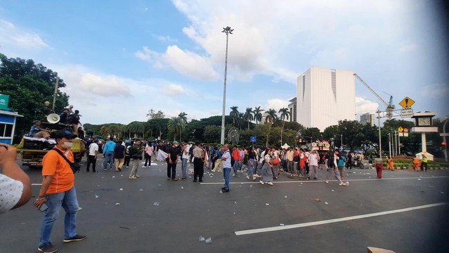 Massa demo membubarkan diri dengan damai dan mengarah ke Jalan Medan Merdeka Selatan. Polisi mulai membuka barikader di Jalan Medan Merdeka Barat arah Bundaran HI. Begitupun barikader pada arah sebaliknya.