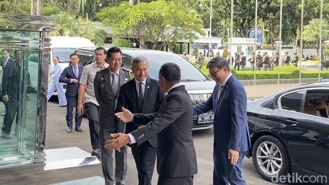 Menteri Luar Negeri (Menlu) Singapura Vivian Balakrishnan melakukan kunjungan kehormatan dengan Menteri Pertahanan (Menhan) yang juga presiden terpilih, Prabowo Subianto. Vivian tiba di Kantor Kementerian Pertahanan (Kemhan), Jakarta Pusat.