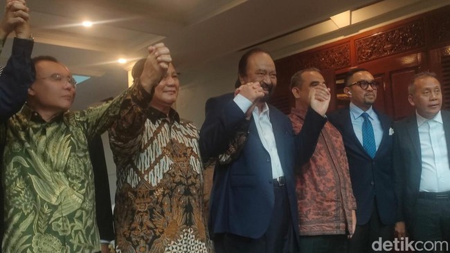 Presiden terpilih Prabowo Subianto mengungkapkan kesepakatan kerja sama dalam pertemuannya dengan Ketum NasDem Surya Paloh. Kerja sama itu disebut Prabowo demi kepentingan rakyat.