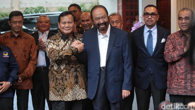 "Kita sebenarnya sahabat lama, jadi pertemuan berjalan dengan sangat baik. Tadi saya sampaikan bahwa saya sangat menghargai karena Pak Surya Paloh termasuk salah satu yang paling pertama untuk mengucap selamat atas diterimanya mandat dari rakyat kepada paslon 02," ujarnya.