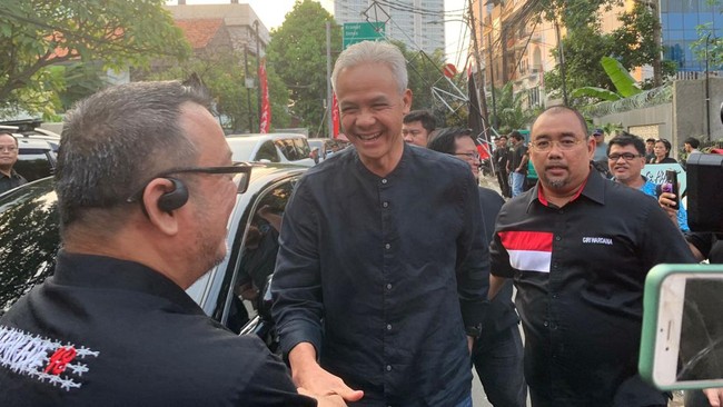 Pantauan detikcom, acara halalbihalal digelar di Sekretariat Barikade 98, Menteng, Jakarta Pusat, Selasa (7/5/2024), Ganjar datang langsung disambut oleh peserta halalbihalal. Datang mengenakan kemeja hitam dengan bawahan celana denim.