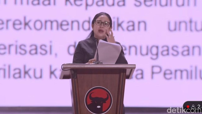 Acara Rakernas PDIP digelar di Beach City International Stadium, Ancol, Jakarta Utara, selama 24-26 Mei 2024. Dalam kesempatan itu, Puan membacakan sejumlah poin rekomendasi hasil Rakernas partai.