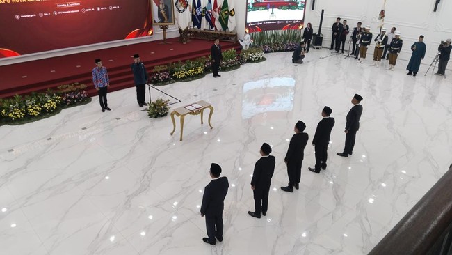 Pelantikan digelar di Gedung KPU RI, Jakarta Pusat, Senin (3/6/2024). Kelima anggota KPU Kota Gorontalo yang dilantik antara lain Fadjrin Buhang, Junaidi Yusrin, Mario S. Nurkamiden, Muhamadun Bashar Laba, dan Ramli Ondang Djau.