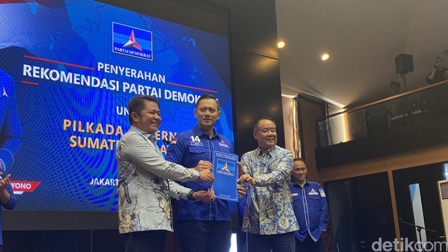 Rekomendasi pencalonan itu dilakukan di kantor DPP Demokrat, Menteng, Jakarta Pusat, Selasa (11/6/2024). Acara itu dihadiri Sekjen Demokrat Teuku Riefky Harsya, Anggota Majelis Tinggi Demokrat Andi Mallarangeng, Bendahara Umum Demokrat Renville, Ketua Bappilu Demokrat Andi Arief.