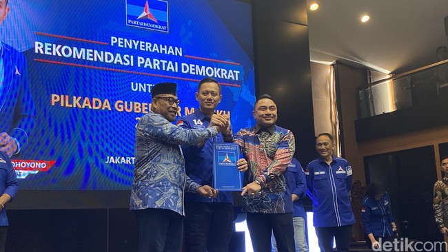 Rekomendasi pencalonan itu dilakukan di kantor DPP Demokrat, Menteng, Jakarta Pusat, Selasa (11/6/2024). Acara itu dihadiri Sekjen Demokrat Teuku Riefky Harsya, Anggota Majelis Tinggi Demokrat Andi Mallarangeng, Bendahara Umum Demokrat Renville, dan Ketua Bappilu Demokrat Andi Arief.