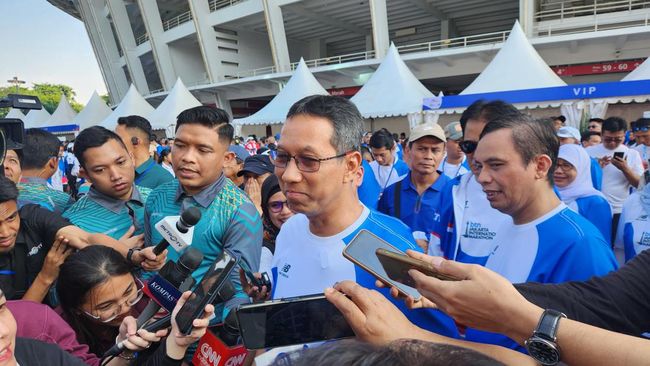 Soal peluang maju Pilgub DKI Jakarta ditanyakan kepada Heru usai Jakarta International Marathon di GBK, Jakarta, Minggu (23/6/2024). Heru Budi sempat terdiam sebelum menjawab pertanyaan tersebut.