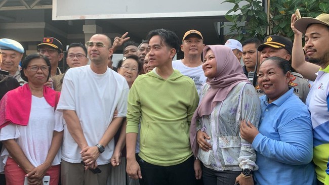 Pantauan detikcom di Kampung Deret Pelanggi, Tanah Tinggi, Rabu (3/7/2024), Gibran tiba di lokasi sekitar pukul 09.06 WIB. Gibran dan Raffi turun dari mobil dan langsung disambut warga.