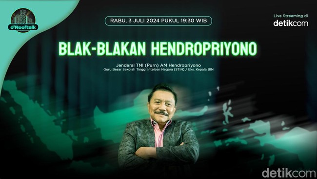 d'Rooftalk malam ini akan mengulas seputar pertahanan keamanan nasional dan isu politik terkini secara lengkap dan eksklusif bersama mantan kepala BIN Jenderal TNI (Purn) AM Hendropriyono, dalam tema Blak-blakan Hendropriyono. Acara disiarkan secara langsung pada Rabu, 3 Juli 2024, pukul 19:30 WIB di detikcom, 20detik.com, dan seluruh media sosial detikcom.