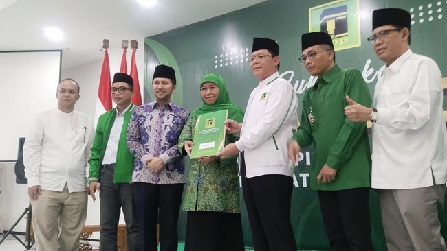PPP resmi memberikan rekomendasi dukungan kepada Khofifah Indar Parawansa-Emil Dardak maju Pilgub Jatim 2024. Plt Ketua Umum PPP, M Mardiono, menyerahkan rekomendasi tersebut secara langsung.