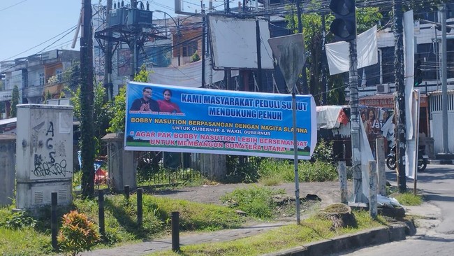 Selain itu, spanduk tersebut juga bertuliskan 'Agar Pak Bobby Nasution Lebih Bersemangat Untuk Membangun Sumatera Utara'.
