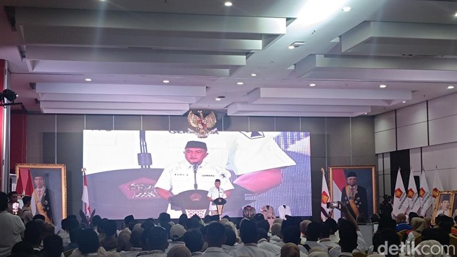 Deklarasi digelar di Hotel Lorin Sentul, Kabupaten Bogor, Jawa Barat, Senin (22/7/2024). Hadir dalam acara tersebut Sekjen Partai Gerindra Ahmad Muzani beserta jajaran DPP, serta Ketua DPC Gerindra Kabupaten Bogor, Iwan Setiawan.