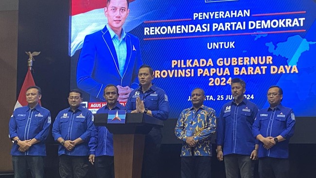 "Sore ini kami kembali menyerahkan surat rekomendasi kepada kandidat yang akan berlaga di Pilkada 2024, baik pemilihan gubernur maupun tingkat kabupaten/kota. Bersama saya, sudah hadir Bapak Abdul Faris Umlati biasa disingkat Afu sebagai calon gubernur untuk Provinsi Papua Barat Daya," kata AHY.