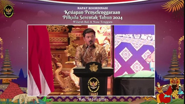 Hal itu disampaikan Hadi saat menyampaikan arahan dalam Rapat Koordinasi Kesiapan Penyelenggaraan Pilkada Serentak Tahun 2024 wilayah Bali dan Nusa Tenggara seperti dilihat di siaran langsung kanal YouTube Kemenko Polhukam, Selasa (30/7/2024). Mulanya, Hadi menekankan KPU, Bawaslu hingga DKPP harus menjalankan tugas fungsi sesuai kewenangannya.