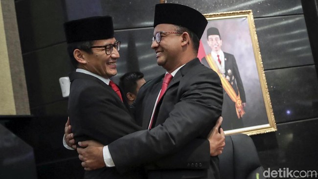 "Ini belum kelihatan Pak Aniesnya, mungkin ketemu di bawah nanti," ujar Sandiaga kepada wartawan.