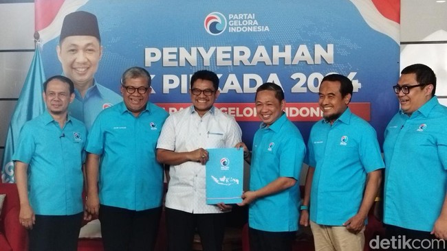 Partai Gelora menyerahkan 14 surat rekomendasi kepada bakal calon bupati dan wakil bupati untuk Pilkada 2024. Penyerahan SK diberikan langsung oleh Ketua Umum Partai Gelora, Anis Matta.