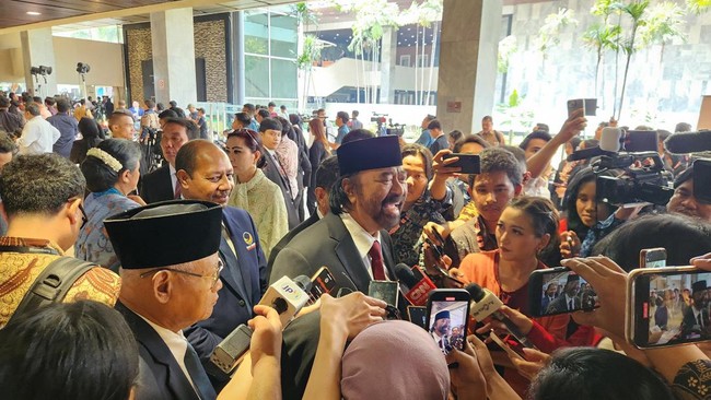 "Nggak ada masalah. NasDem oke-oke aja," kata Paloh di gedung DPR, Jakarta, Jumat (16/8/2024).