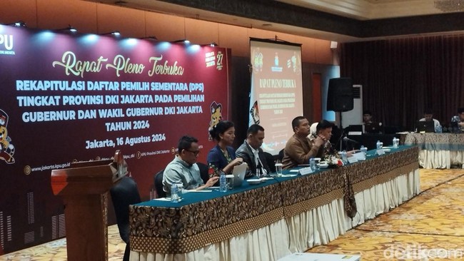 Rapat pleno itu dipimpin oleh Ketua KPU DKI Wahyu Dinata, dan seluruh komisioner KPU DKI yaitu, Astri Megatari, Dody Wijaya, Fahmi Zikrillah, Irwan Supriadi Rambe, Muhammad Tarmizi, dan Nelvia Gustina. Rapat dilaksanakan di Hotel Borobudur, Jakarta Pusat pada Jumat (16/8/2024).