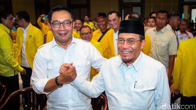 RK kemudian menyapa Presiden PKS Ahmad Syaikhu. Dia juga menyapa Sekjen Golkar Lodewijk Freidrich Paulus.