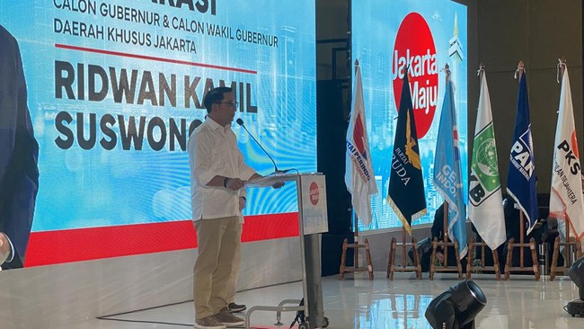 "Mas Gibran saya lapor, kenapa visinya Jakarta Baru? Karena Jakarta sedang ditanya oleh warganya, sedang ditanya oleh dunia, apa jadinya, apa imajinasinya Jakarta sejak ditinggal oleh Nusantara menjadi ibu kota di Kalimantan?" kata RK saat deklarasi di Hotel Sultan, Jakarta, Senin (19/8/2024).