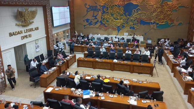 Rapat dipimpin oleh Wakil Ketua Baleg DPR Ahmad Baidowi atau Awiek di gedung Nusantara I DPR RI, Senayan, Jakarta Pusat, Rabu (21/8/2024). Pengambilan keputusan tingkat I itu diambil setelah Baleg DPR melakukan rapat maraton sejak pagi.