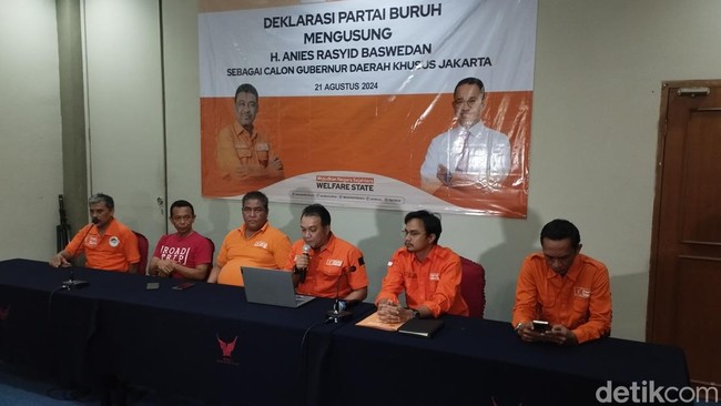 Partai Buruh mendeklarasikan dukungan untuk Anies Baswedan maju di Pilgub Jakarta 2024 usai putusan MK terkait Pilkada. Pihaknya menyiapkan 4 opsi calon wakil gubernur.