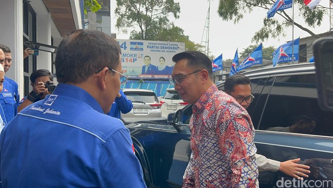 Bakal calon gubernur Jakarta yang diusung Koalisi Indonesia Maju (KIM) Plus Ridwan Kamil menyambangi Kantor DPD Partai Demokrat DKI Jakarta pagi ini. Namun bakal calon wakil gubernur yang menjadi pasangannya, Suswono, tak terlihat membersamai