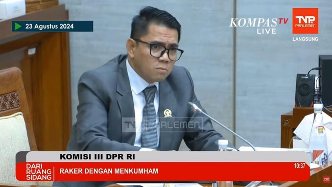 Anggota Komisi III DPR Fraksi PDIP Arteria Dahlan bicara soal batalnya pengesahan revisi UU Pilkada dalam rapat kerja bersama Menkumham Supratman Andi Agtas pagi tadi. Dalam pemaparannya, Arteria menyebut nama presiden terpilih Prabowo Subianto.