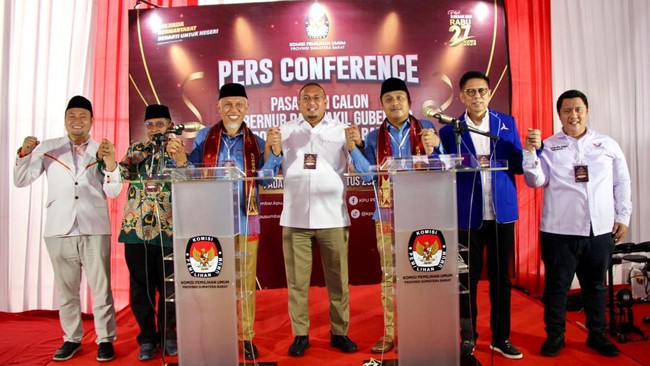 Pasangan calon Mahyeldi-Vasko Ruseimy resmi didaftarkan partai pengusung ke Komisi Pemilihan Umum (KPU) Sumatera Barat (Sumbar). Mahyeldi-Vasko diusung oleh lima partai politik, PKS, Gerindra, Demokrat, Perindo dan PBB.