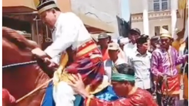 Kader Jaelani terjatuh di hadapan ribuan massa pendukung di depan rumahnya. Dalam video yang viral itu, Kader yang berpakaian adat, terlihat naik ke atas kuda.
