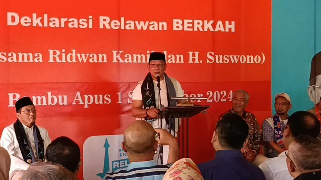 Hal itu disampaikan RK saat menghadiri deklarasi 'Relawan Berkah' di Bambu Apus, Jakarta Timur, Minggu (1/8/2024). Awalnya, RK mengatakan dirinya bersama Suswono maju di Pilkada Jakarta saat status ibu kota negara sudah pindah ke Nusantara yang ada di Kalimantan Timur.