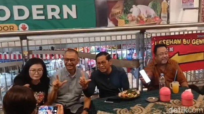 Pasangan bakal calon gubernur dan wakil gubernur Jakarta, Pramono Anung-Rano Karno, makan malam bareng warga di kawasan Blok M, Jakarta Selatan (Jaksel). Pengunjung Blok M mengajak Pramono dan Rano untuk swafoto (selfie).