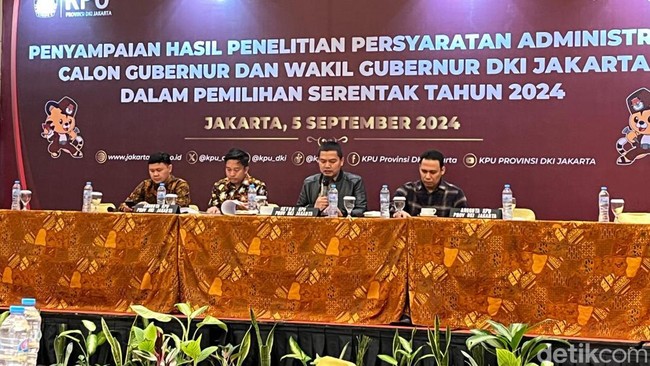 "Kami menyampaikan bahwa ketiga pasangan calon masih belum memenuhi syarat dan harus melakukan perbaikan untuk tiga hari ke depan," kata Ketua KPU DKI Wahyu Dinata di Hotel Luminor Kota, Jakarta Pusat, Kamis (5/9/2024).